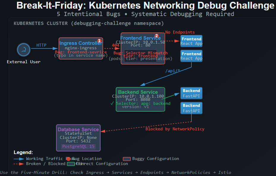 payment-servicebut the actual Service was namedpayments-service. The engineer knew the system was “working fine yesterday” but had no methodology to trace the traffic flow.Spotify’s SRE team estimates that 73% of their Kubernetes incidents involve networking issues, with the most expensive ones being subtle misconfigurations that pass initial validation but fail under specific traffic patterns. Their post-mortems consistently show that teams without systematic debugging approaches take 4-6x longer to resolve issues.